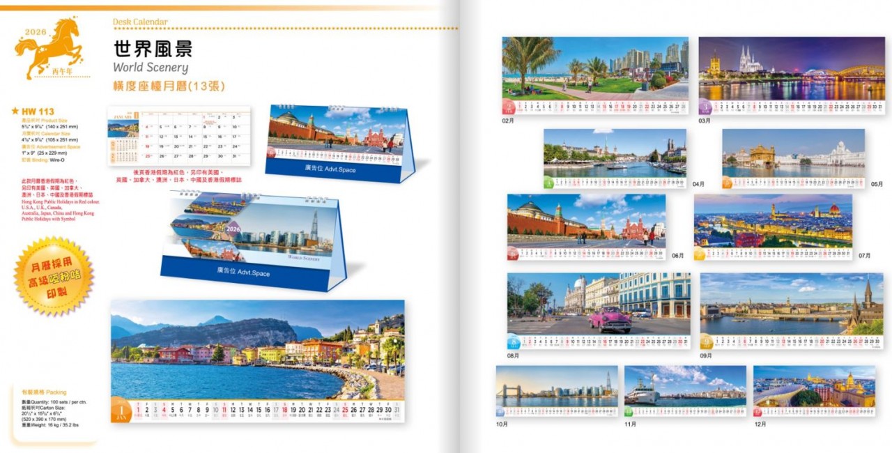 按以下按鈕新增 2026 世界風景橫度座檯月曆(13張) 到喜愛產品列表